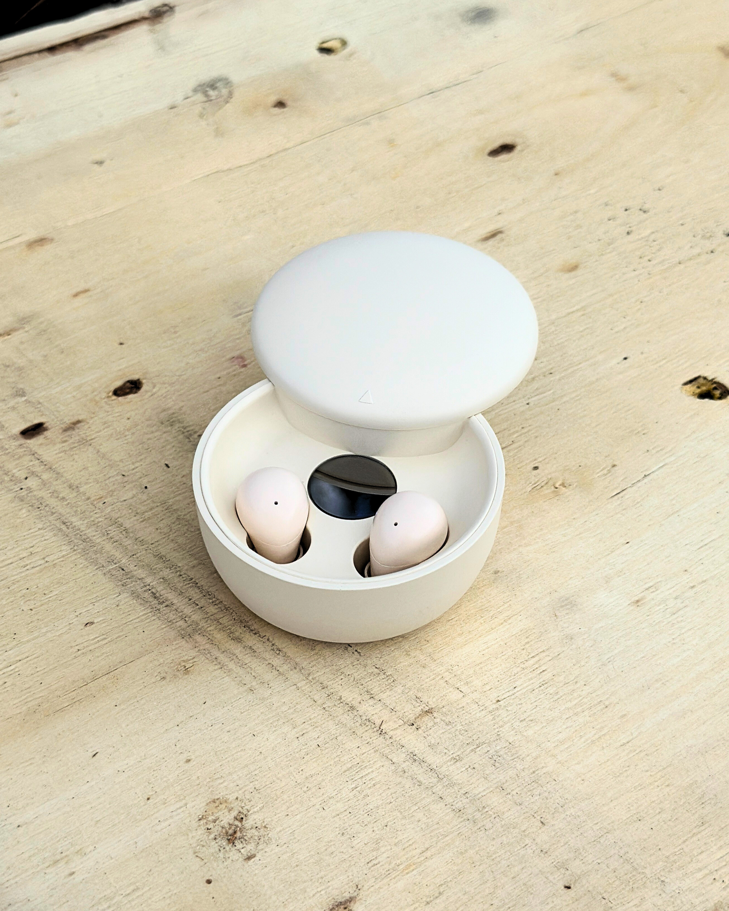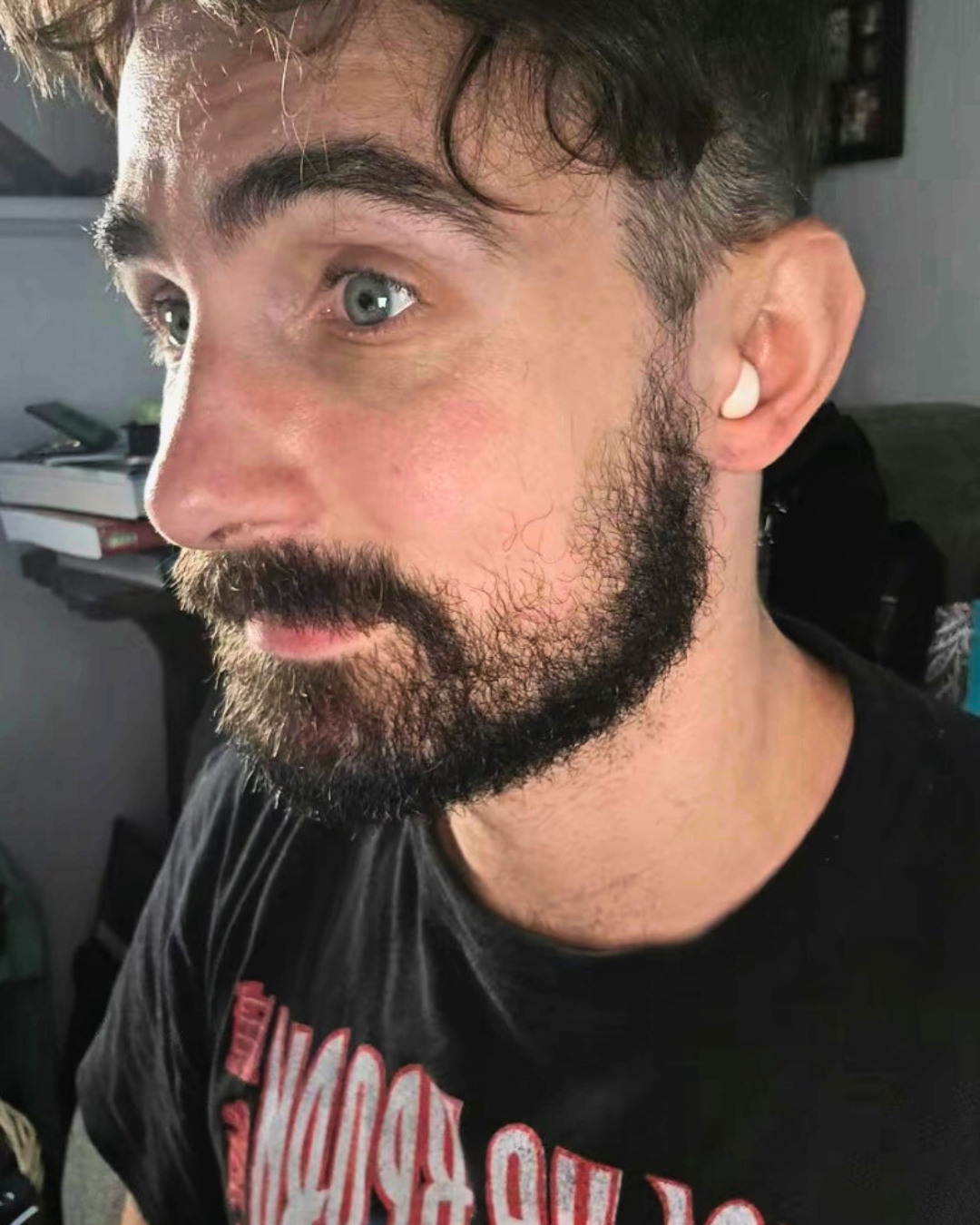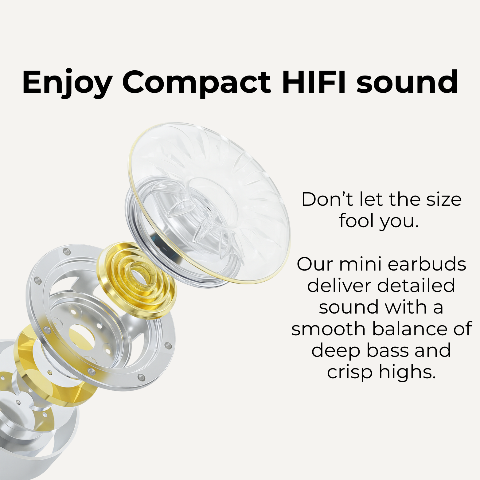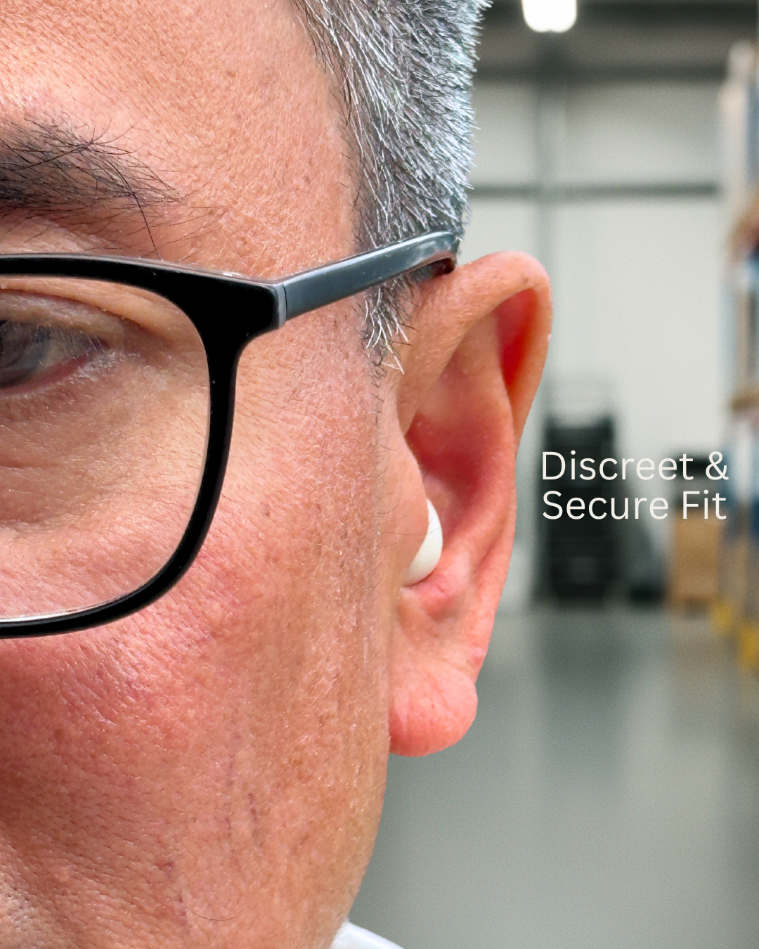 70% smaller than AirPods. Nearly invisible from 10+ feet. Wear them all shift. Nobody notices.